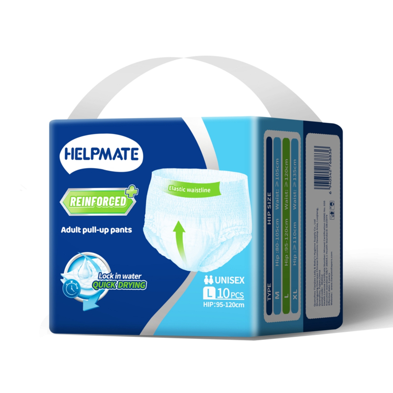 Les couches Pull-Up pour adultes Helpmate sont soigneusement conçues pour offrir aux utilisateurs âgés et aux adultes souffrant d'incontinence une solution digne, confortable et hautement absorbante. Avec des matériaux doux, une feuille arrière respirante et une protection anti-fuite, nos pantalons pour adultes supportent à la fois un usage quotidien et une utilisation nocturne. Approuvé par les soignants, adapté aussi bien aux utilisateurs actifs que alités.