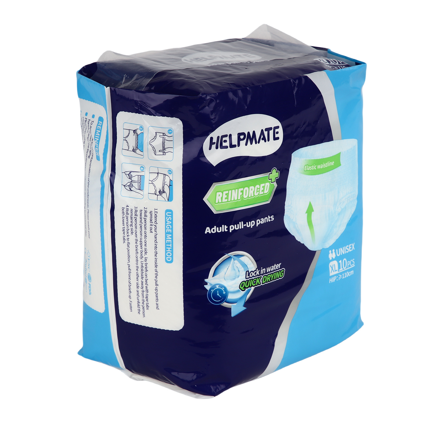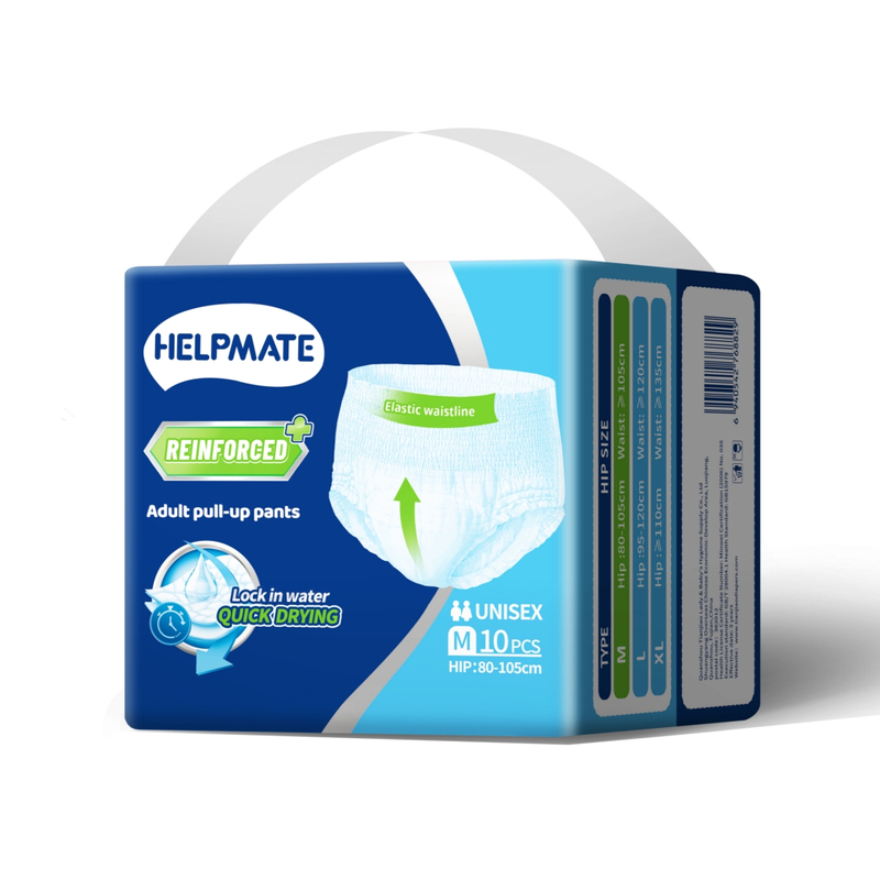 Les couches Pull-Up pour adultes Helpmate sont soigneusement conçues pour offrir aux utilisateurs âgés et aux adultes souffrant d'incontinence une solution digne, confortable et hautement absorbante. Avec des matériaux doux, une feuille arrière respirante et une protection anti-fuite, nos pantalons pour adultes supportent à la fois un usage quotidien et une utilisation nocturne. Approuvé par les soignants, adapté aussi bien aux utilisateurs actifs que alités.